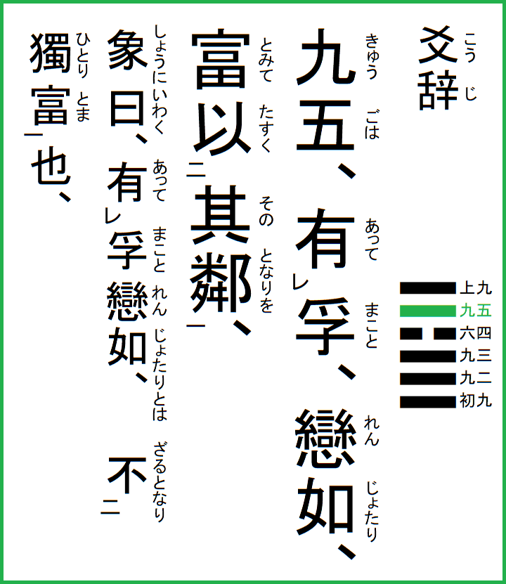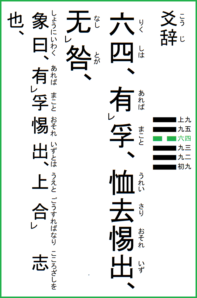 ここに書いているのは、江戸後期の名著、眞勢中州の『周易釈故』より抜粋し、現代語で意訳したものです。 |
