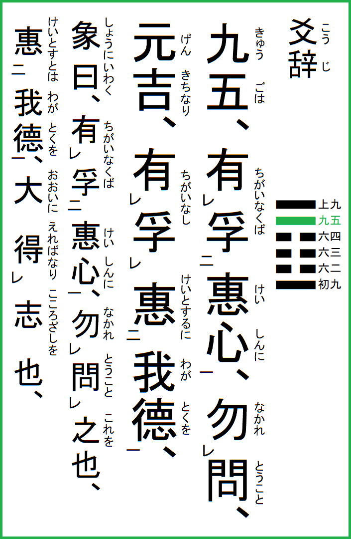 ここに書いているのは、江戸後期の名著、眞勢中州の『周易釈故』より抜粋し、現代語で意訳したものです。 |