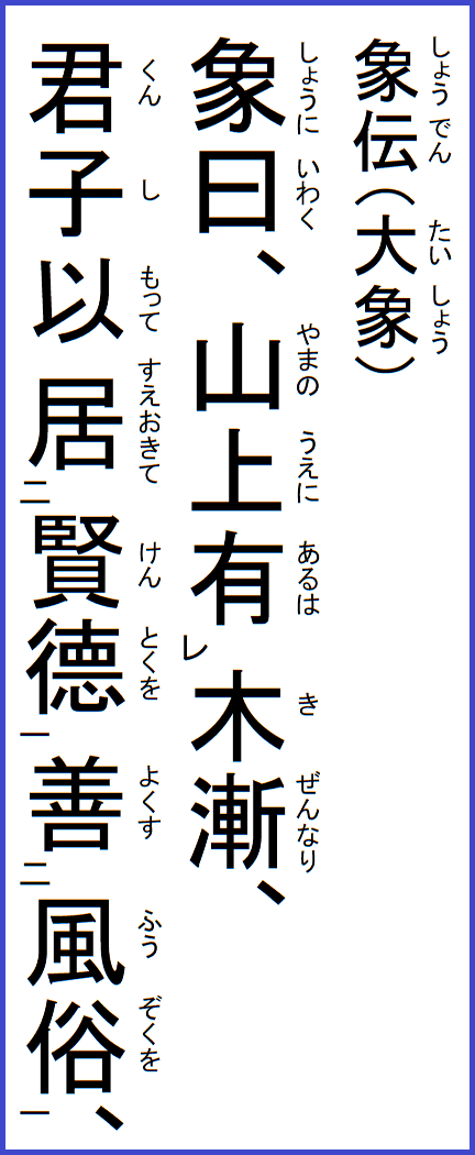 ここに書いているのは、江戸後期の名著、眞勢中州の『周易釈故』より抜粋し、現代語で意訳したものです。 |
