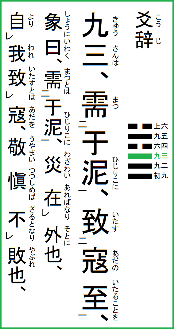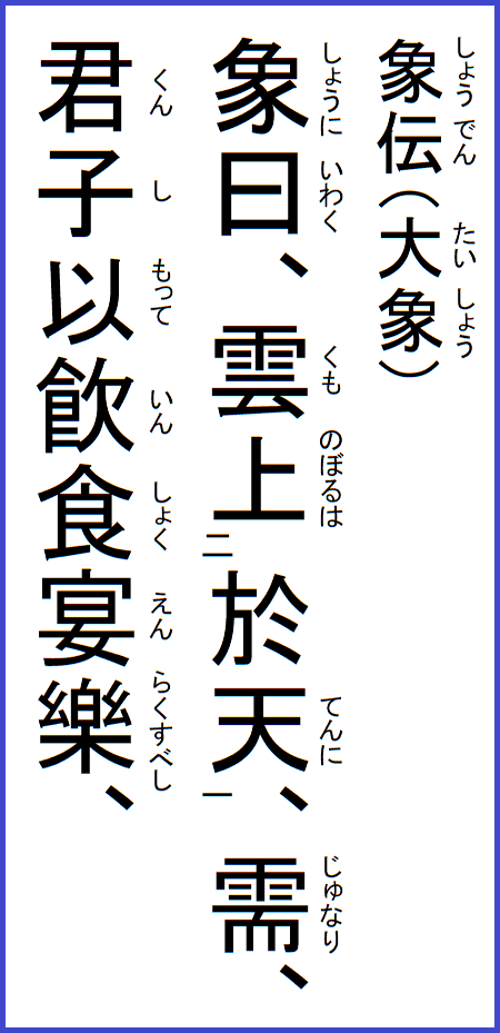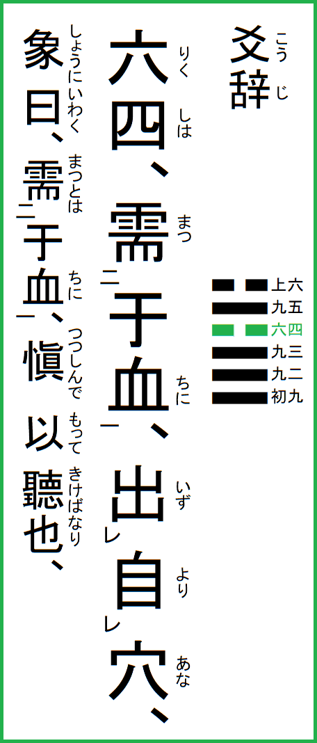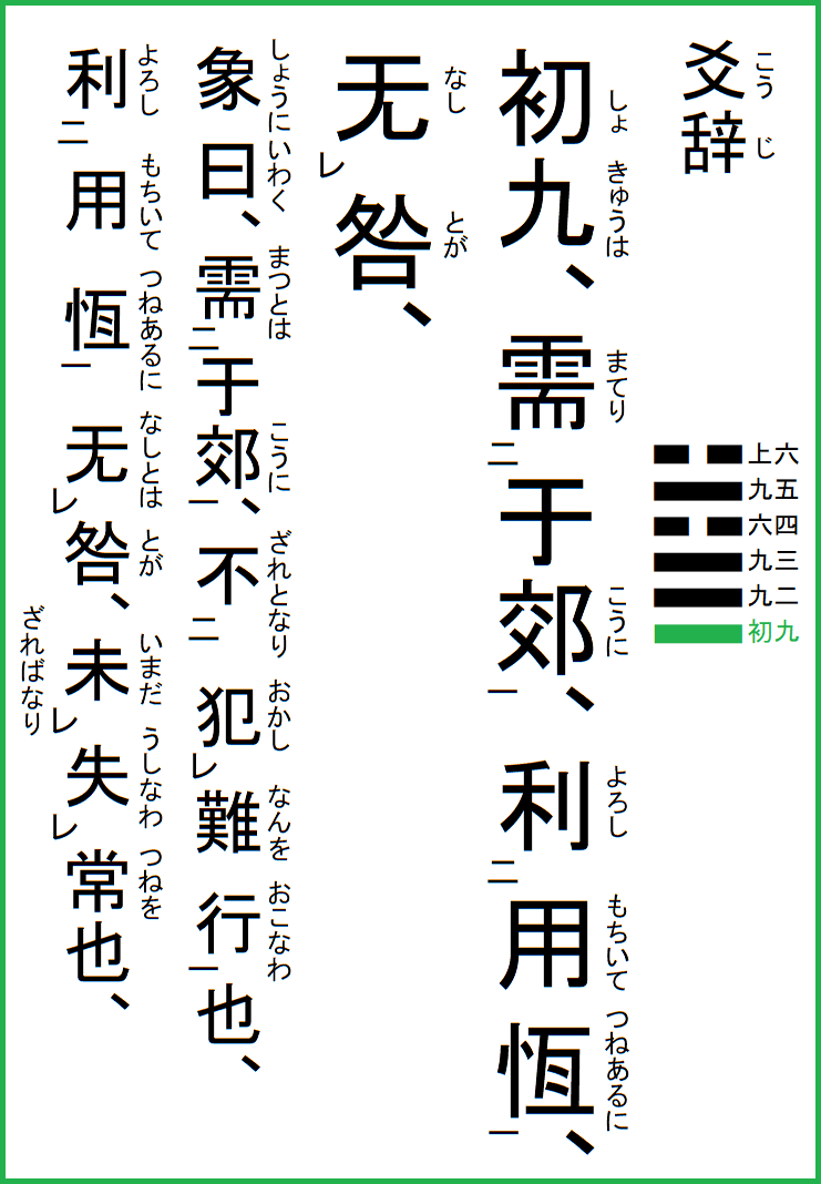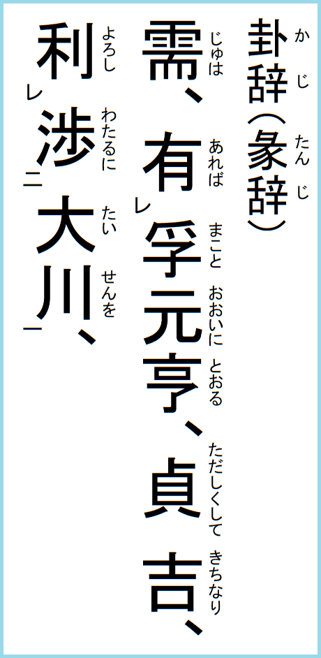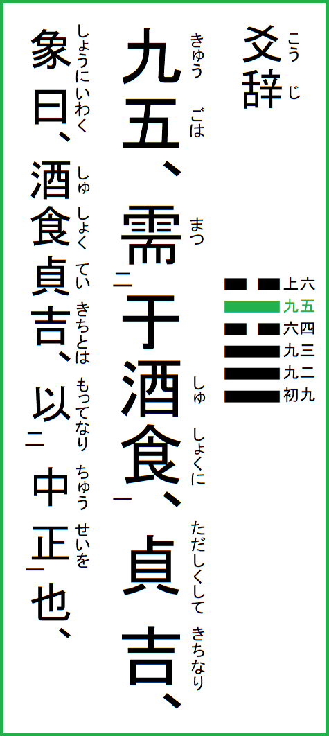 前の卦=04山水蒙 次の卦=06天水訟 05水天需 すいてんじゅ2綏靖天皇のA列。詳細はコチラ。 八卦の