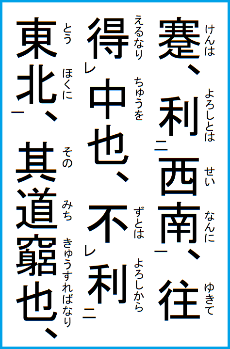 したがって、往き進めば、蹇みは益々深くなるだけである。