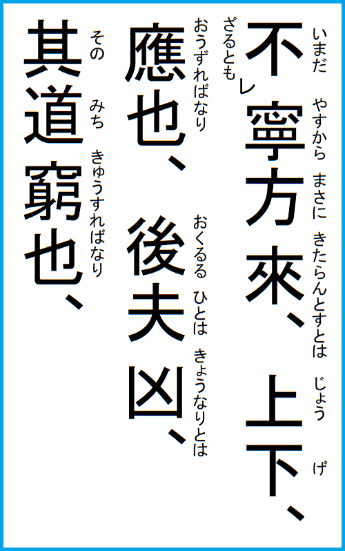 だから初六の爻の辞の中には、孚の字が二回も出てくるのであって、深く孚あるべきことを戒め教えているのである。