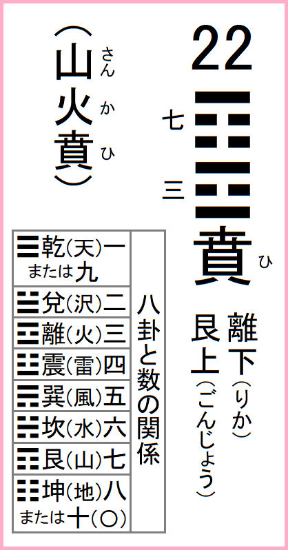 前の卦=21火雷噬嗑 次の卦=23山地剥 22山火賁 さんかひ八卦の