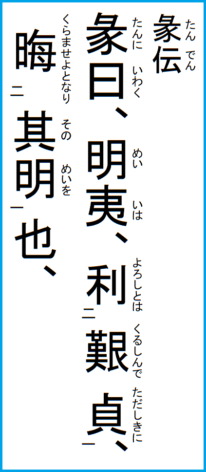 ここに書いているのは、江戸後期の名著、眞勢中州の『周易釈故』より抜粋し、現代語で意訳したものです。 |