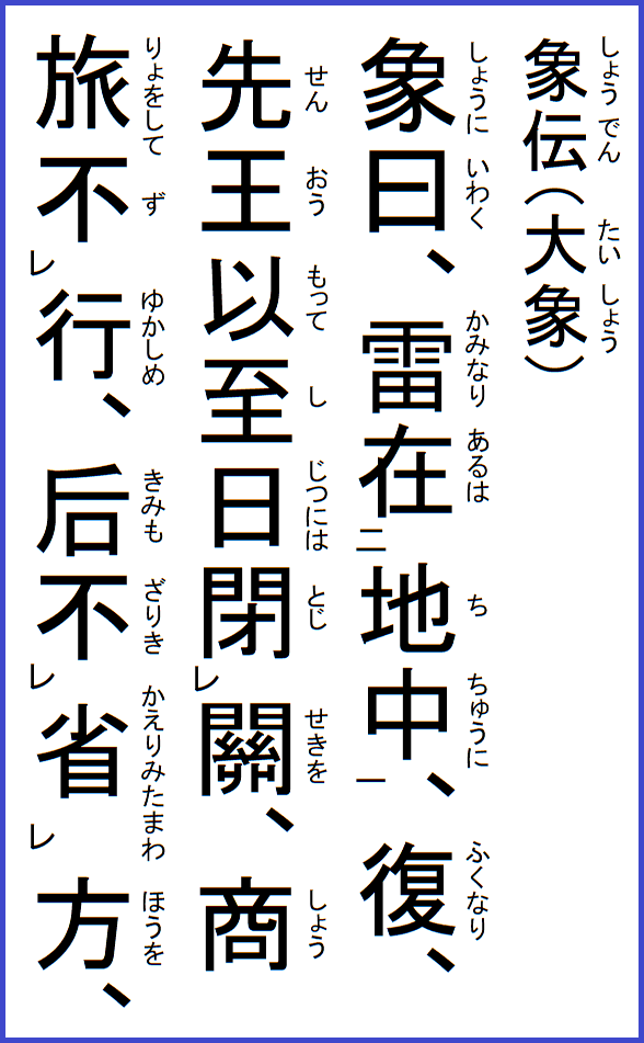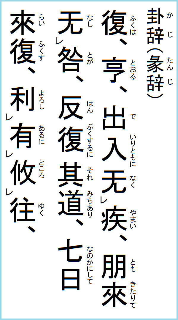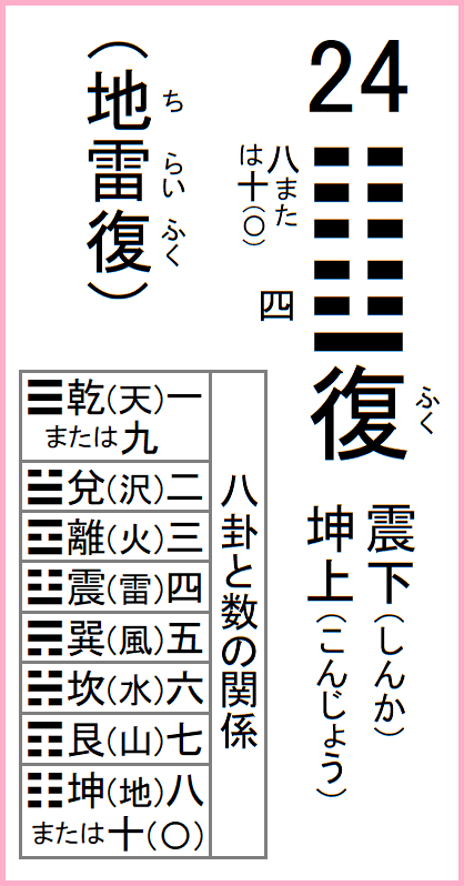前の卦=23山地剥 次の卦=25天雷无妄 24地雷復 ちらいふく伊邪那岐神・妹伊邪那美神のB列。詳細はコチラ。
