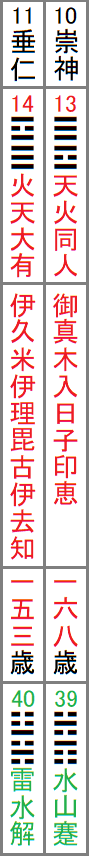 あれ?13天火同人は10崇神のA列であって、11垂仁のA列は13天火同人とは上下を逆にした14䷍火天大有である。