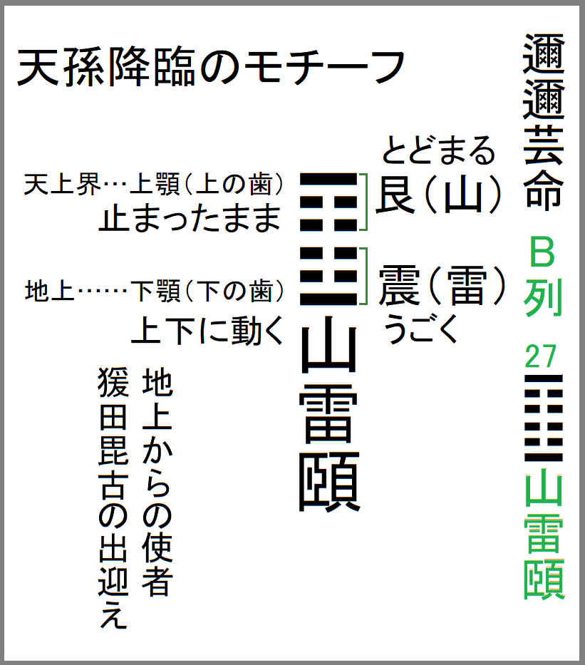 まず目から鱗だったのは、邇邇芸命のB列が䷚山雷頤だ、ということだった。