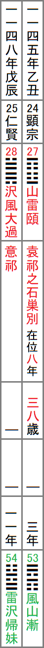 するとこれは、27䷚山雷頤ではなく、その裏卦の28䷛沢風大過をA列とする仁賢天皇の国風諡号の意祁と繋がっていることになる。