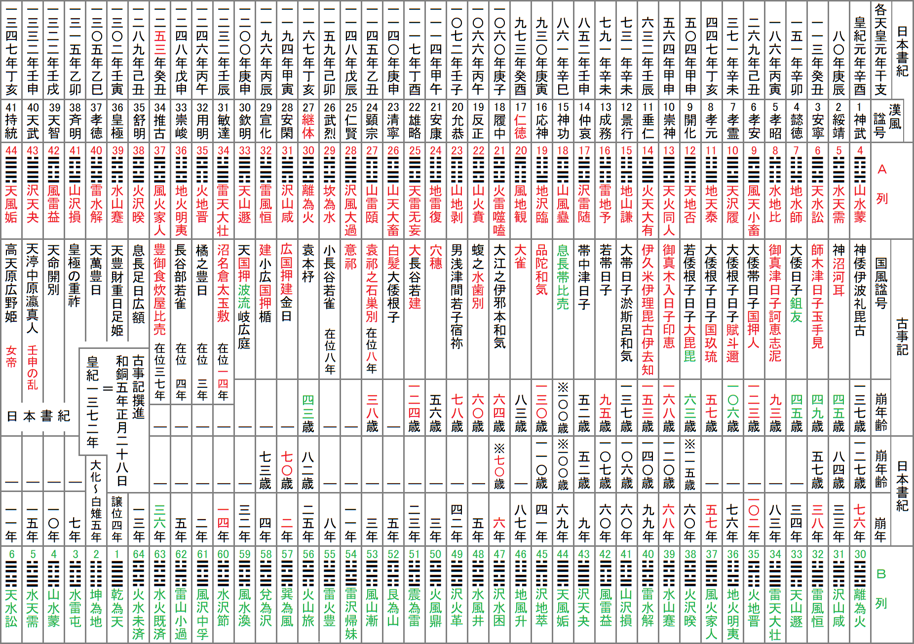 35䷢火地晋は32用明天皇のA列すなわち33崇峻天皇の前の位置である。A列の確認はコチラ