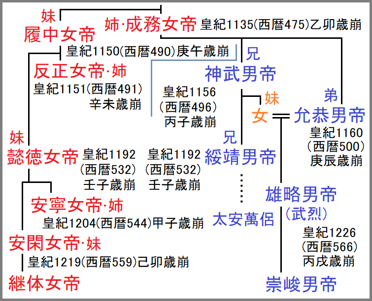 また、武烈元年の己卯は、安閑女帝の崩年と同じである。