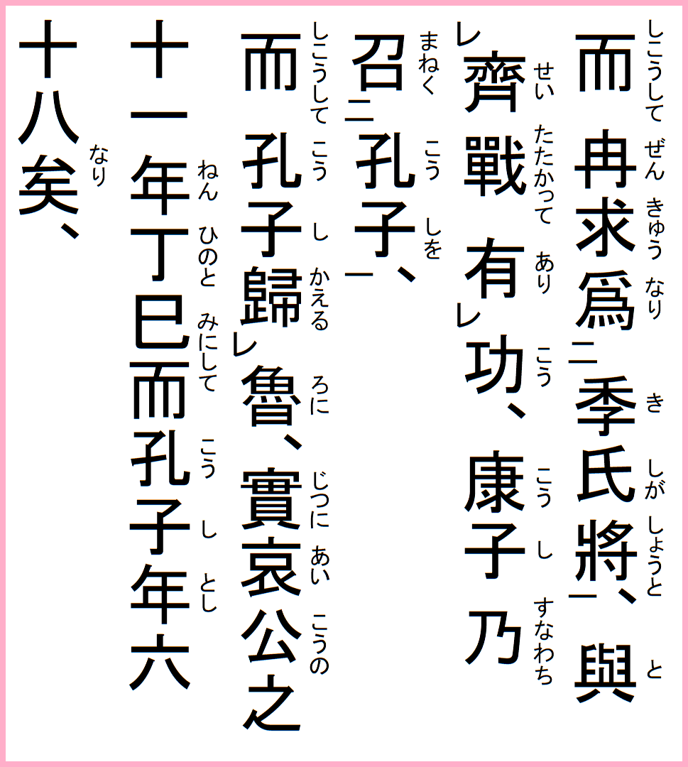 而して冉求季氏が将と為り、斉と戦って功有り、康子乃ち孔子を召く。