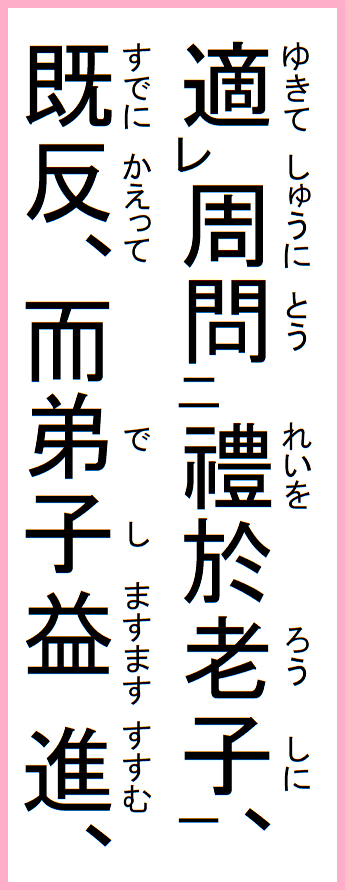 周に適きて礼を老子に問う、既に反って、弟子益ます進む、