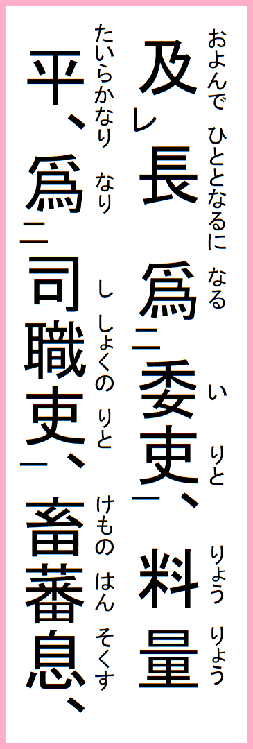 委吏とは野外からの収穫を納める倉の役人で、材木や薪などを司る官の名。