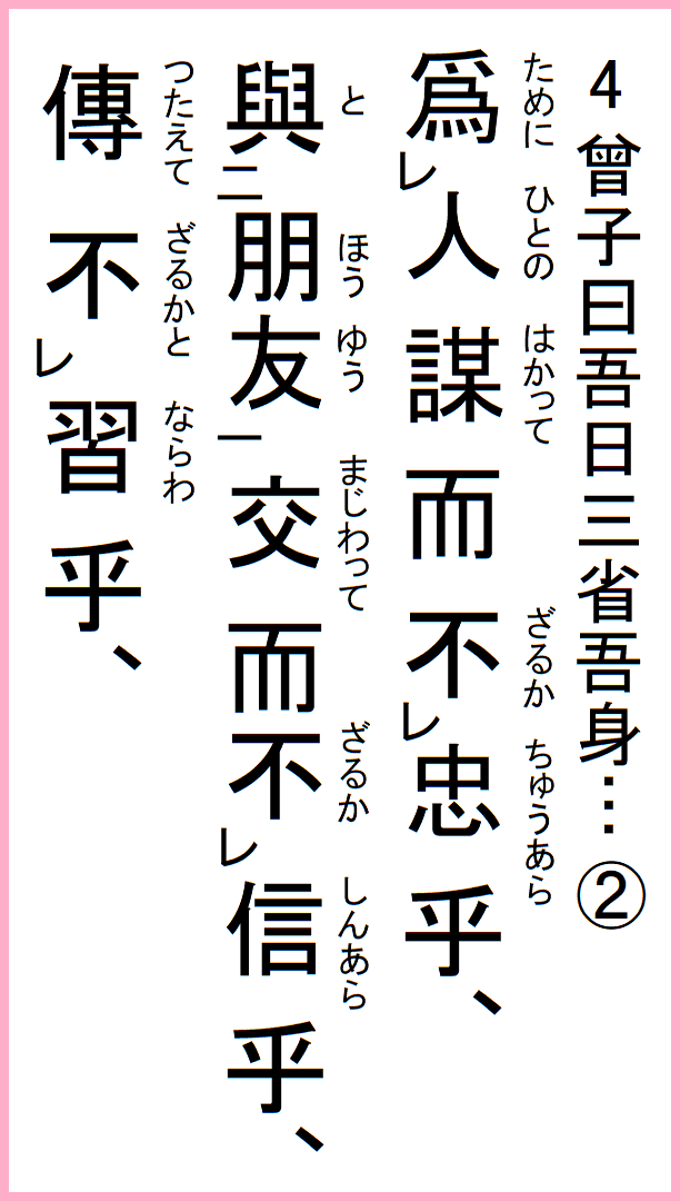 漢文として楽しむ論語 學而第一 4/16