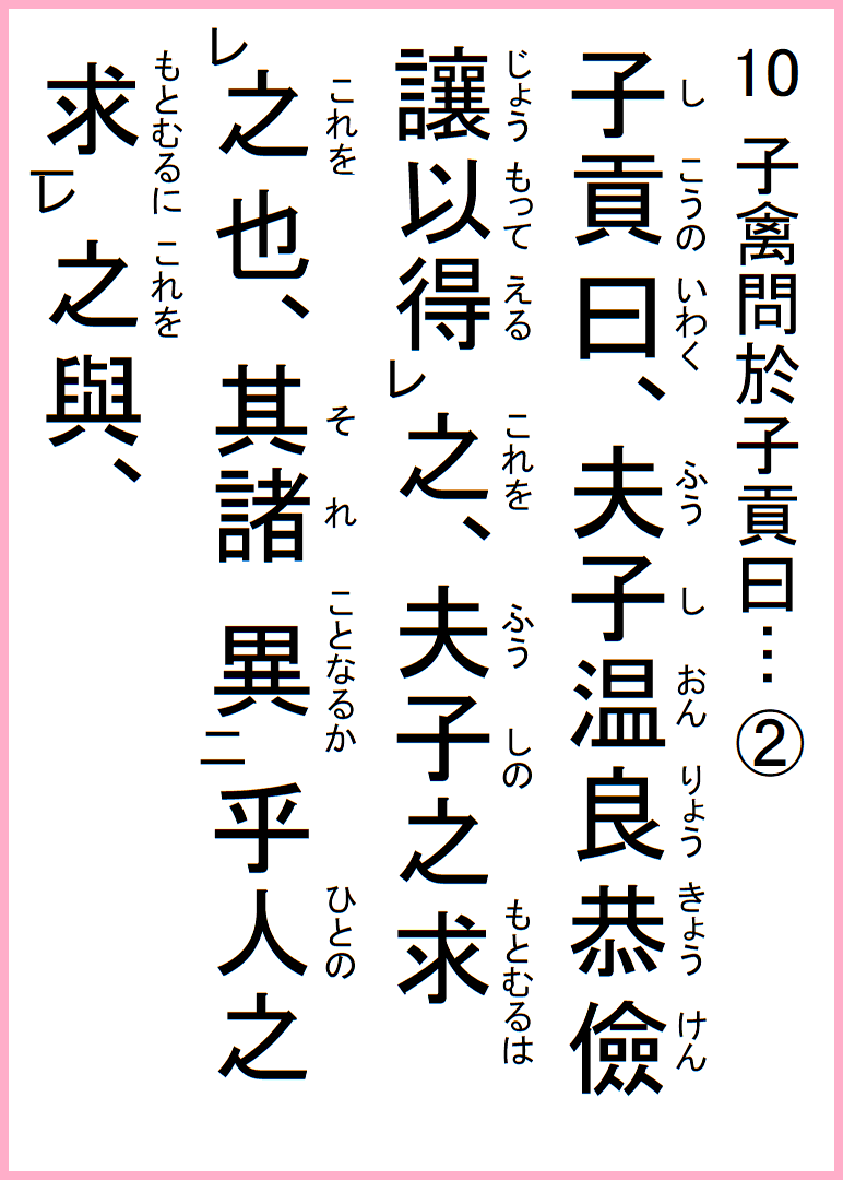 漢文として楽しむ論語 學而第一 10/16トップページ 論語序説(朱子による孔子の略歴) 學而第一 爲政第二 八佾第三 里仁第四 公冶長第五 雍也第六 述而第七 泰伯第八 子罕第九 郷黨第十 先進第十一 顔淵第十二 子路第十三 憲問第十四 衞靈公第十五 季氏第十六 陽貨第十七 微子第十八 子張第十九 堯曰第二十 學而第一 |