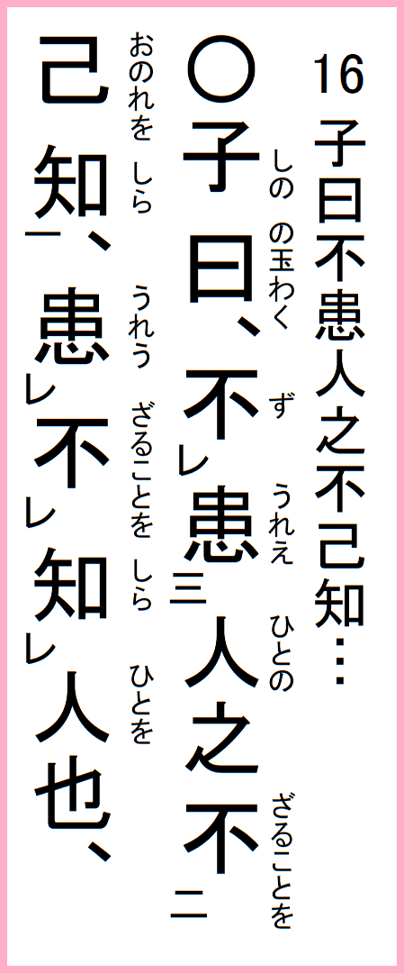 1-16 子曰、人の己を知らざることを患えず、人を知ら…