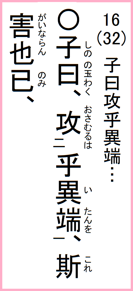 2-16 子曰、異端を攻むるは、これ害ならんのみ、