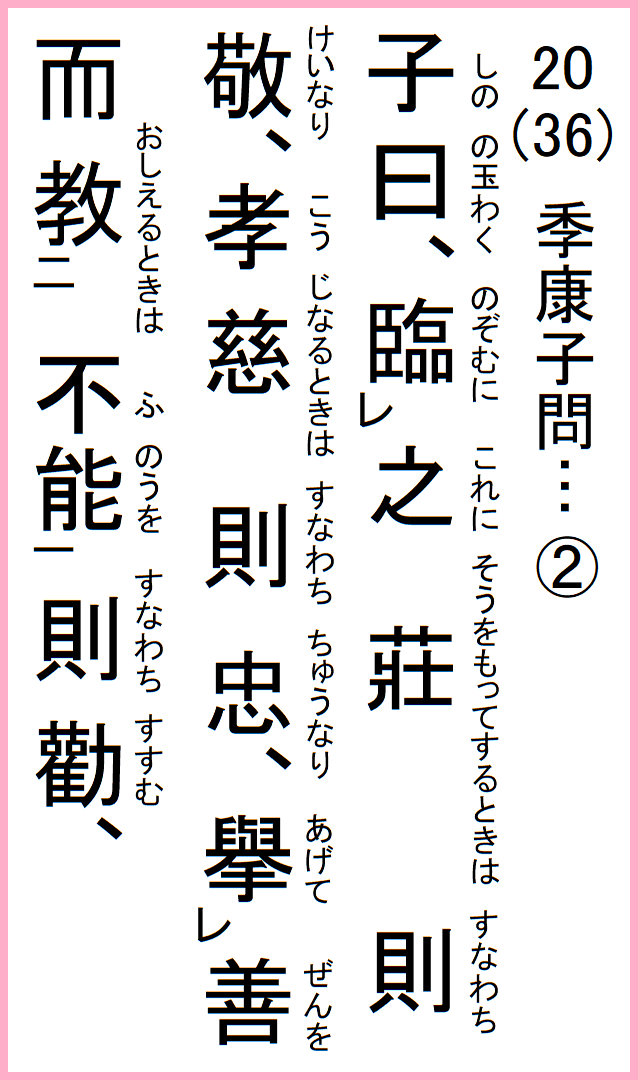 2-20 季康子問う、民をして敬忠あって以って勧ま使め…