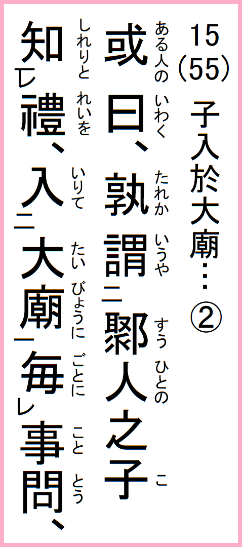 3-15 子大廟に入りて事毎に問う、或人曰、孰か鄹人の…