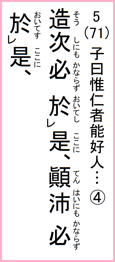 造次にも必ず是に於いてし、顚沛にも必ず是に於いてす、