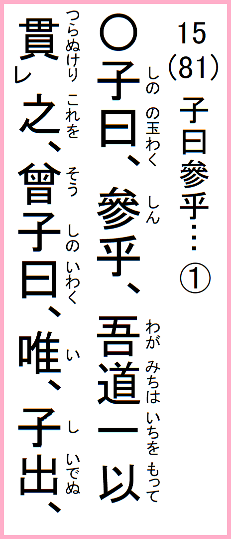 4-15 子曰、参、吾が道は一を以って之を貫けり、曽子…