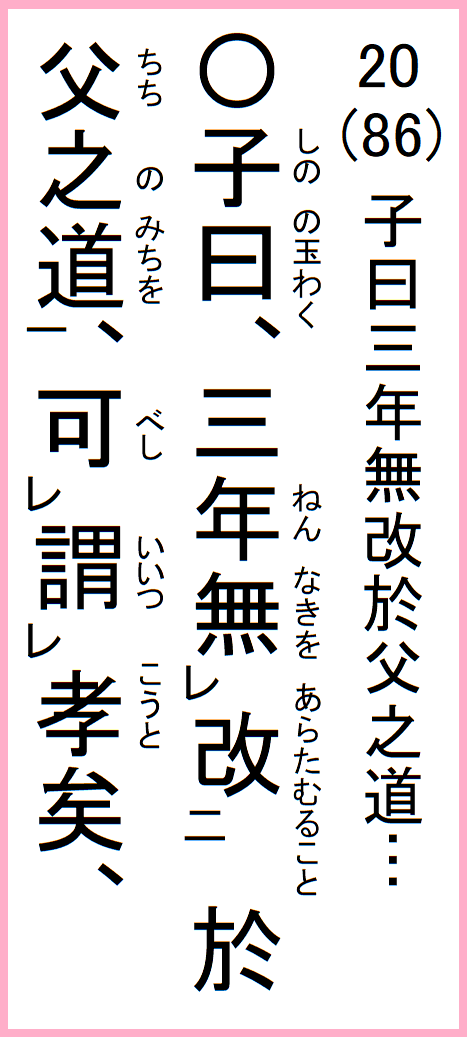 4-20 子曰、三年父の道を改むること無きを孝と謂いつ…