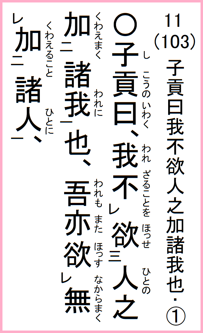 5-11 子貢曰、我人の我に加えまく欲せざることを、吾…