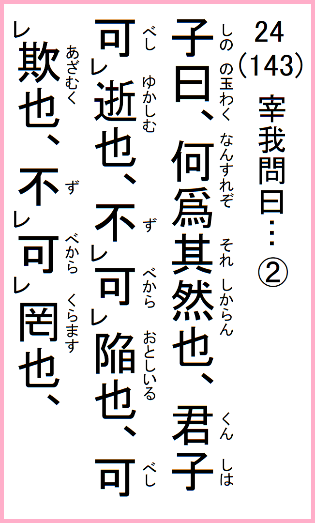 子曰、何爲其然也、君子可逝也、不可陥也、可欺也、不可罔也、