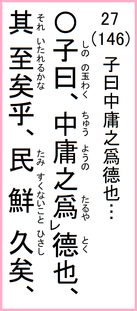 6-27 子曰、中庸之徳為る、其れ至れるかな、民、鮮い…