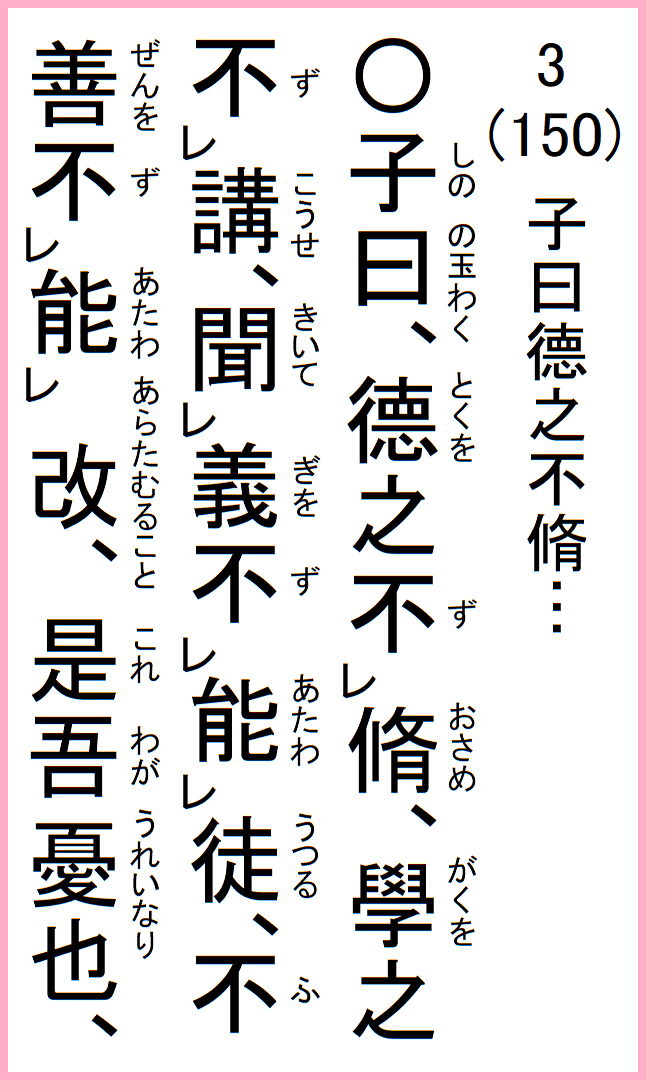 子曰、コ之不脩、學之不講、聞義不能徒、不善不能改、是吾憂也、
