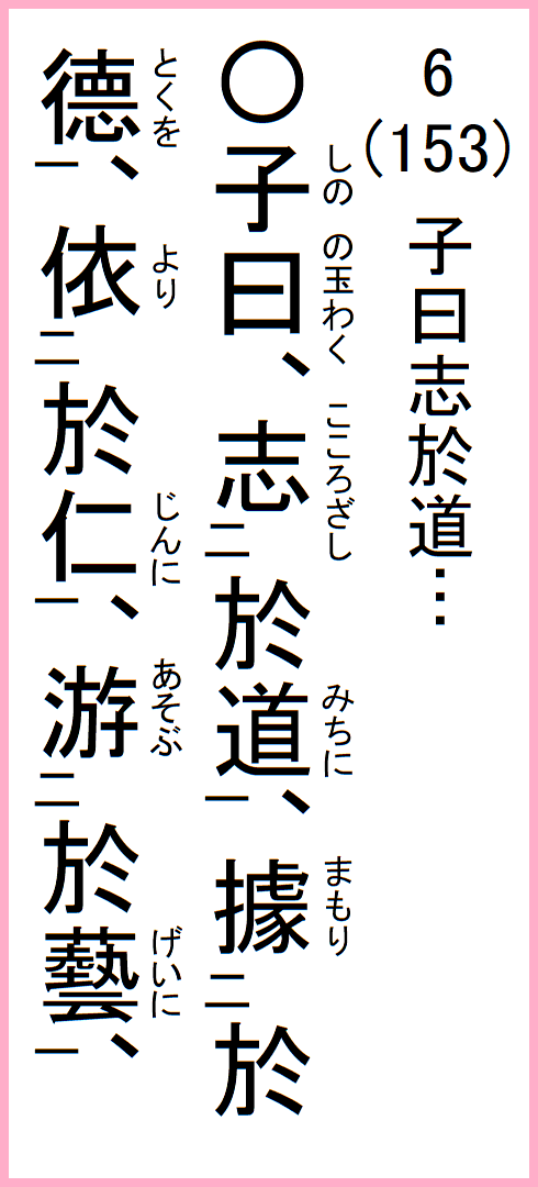 子の曰く、道に志し、徳を據り、仁に依り、芸に游ぶ、