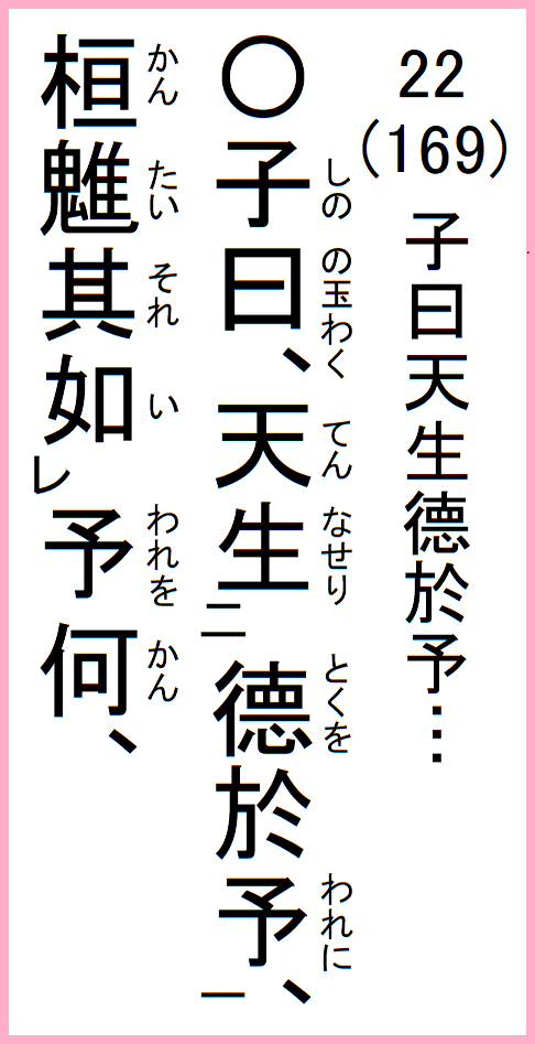22(169) 子曰天生コ於予…