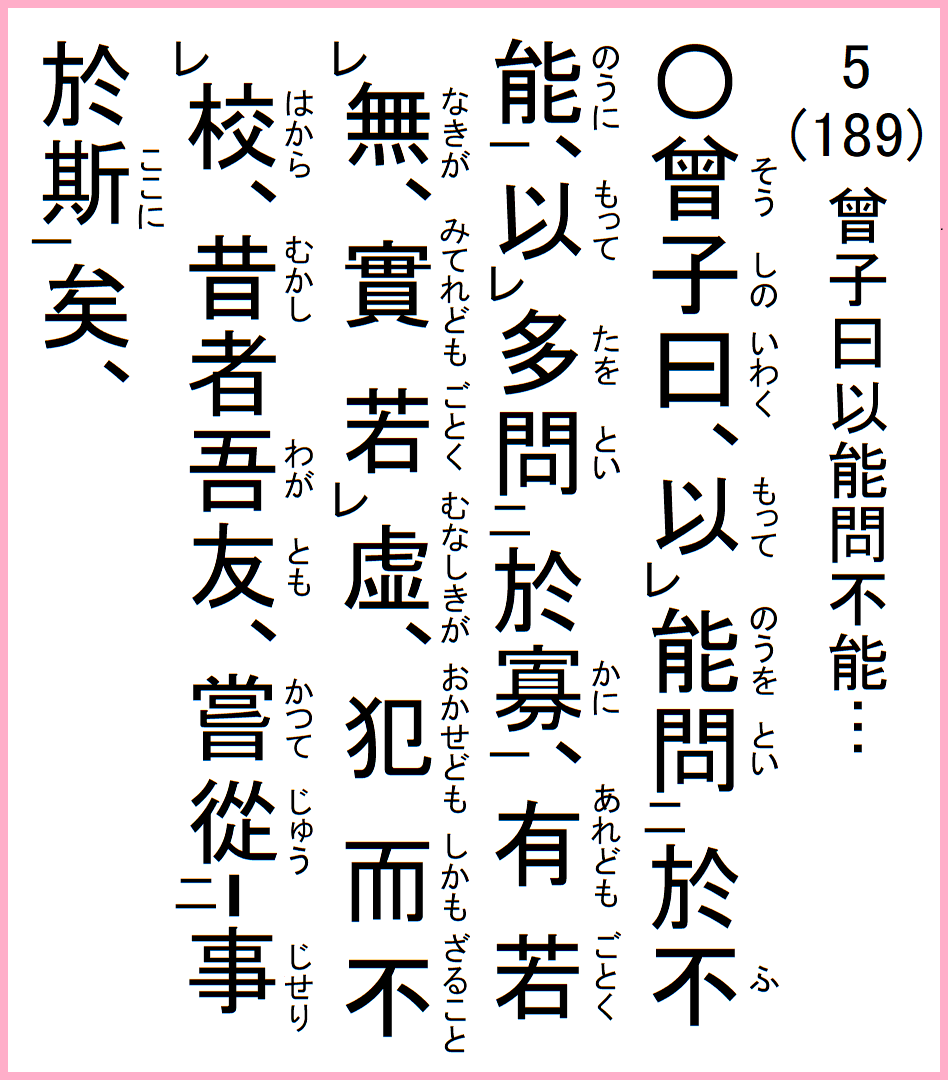 8-5 曽子曰、能を以って不能に問い、多を以って寡に…