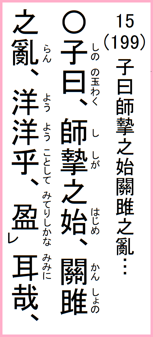 子の曰く、師摯が始め、関雎の乱、洋々乎として耳に盈てりしかな、