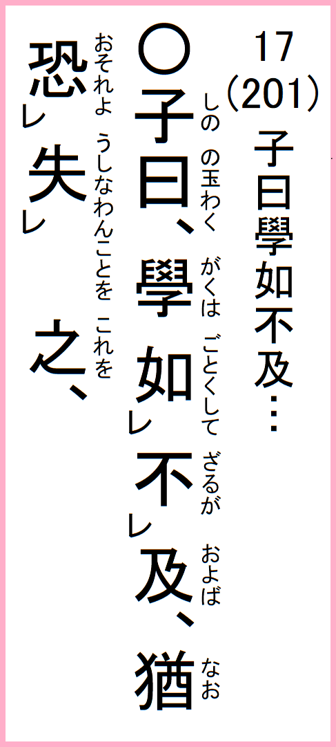8-17 子曰、学は及ばざるが如くして、猶これを失わん…