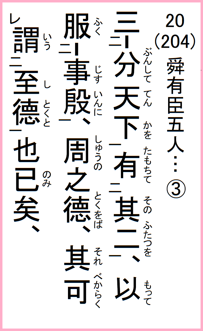前・泰伯第八19/21 ページTOP 次・泰伯第八21/21 泰伯第八 各章 論語トップ 論語序説(朱子による孔子の略歴) 學而第一 爲政第二 八佾第三 里仁第四 公冶長第五 雍也第六 述而第七 泰伯第八 子罕第九 郷黨第十 先進第十一 顔淵第十二 子路第十三 憲問第十四 衞靈公第十五 季氏第十六 陽貨第十七 微子第十八 子張第十九 堯曰第二十 |