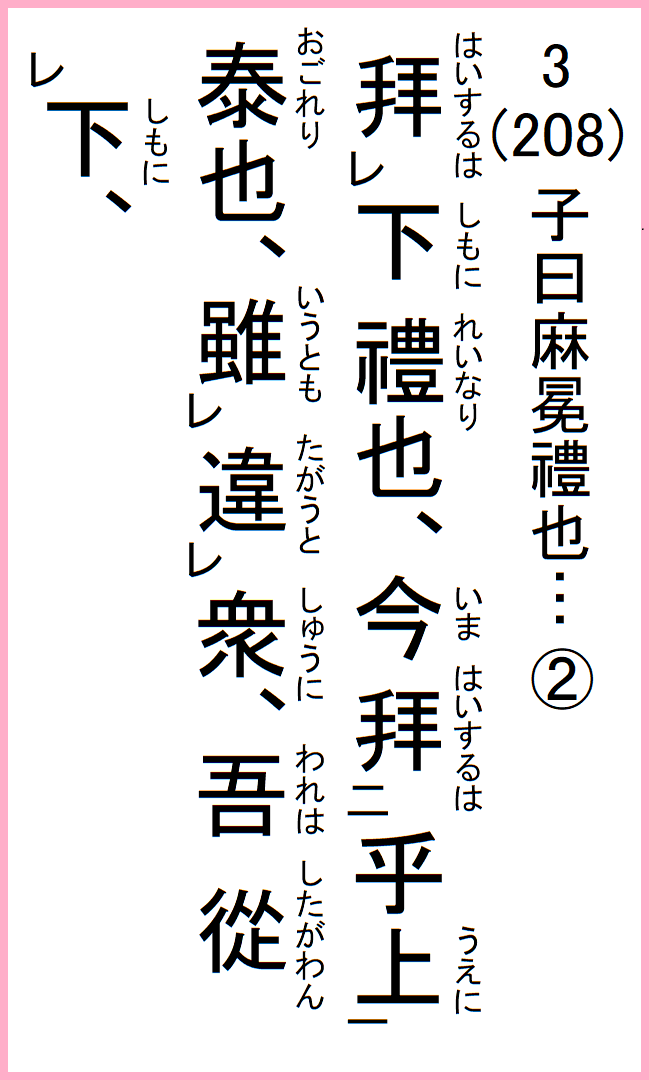 下に拝するは礼なり、今、上に拝するは泰れり、衆に違うと謂うとも、吾、下に従わん、