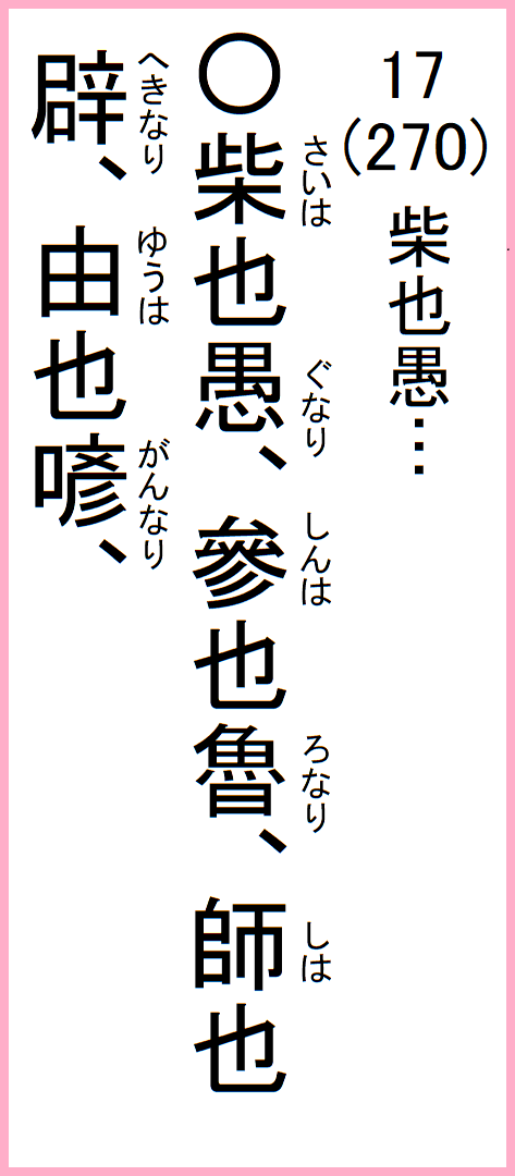 11-17 柴は愚なり、参は魯なり、師は辟なり、由は喭な…