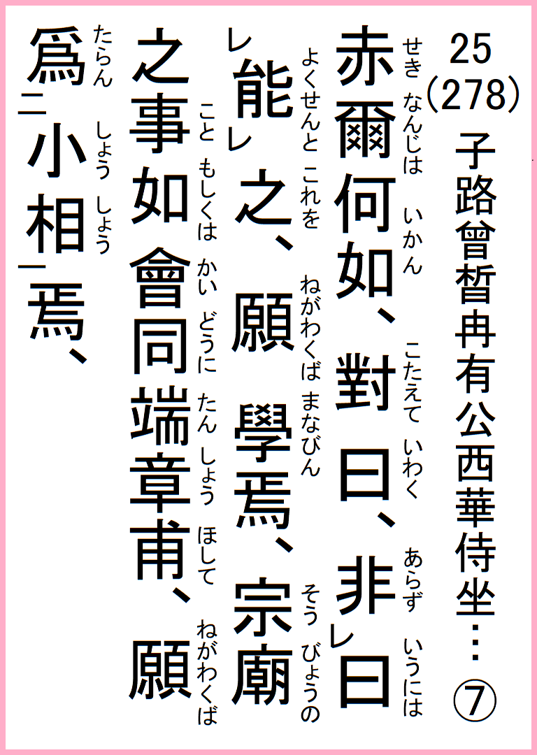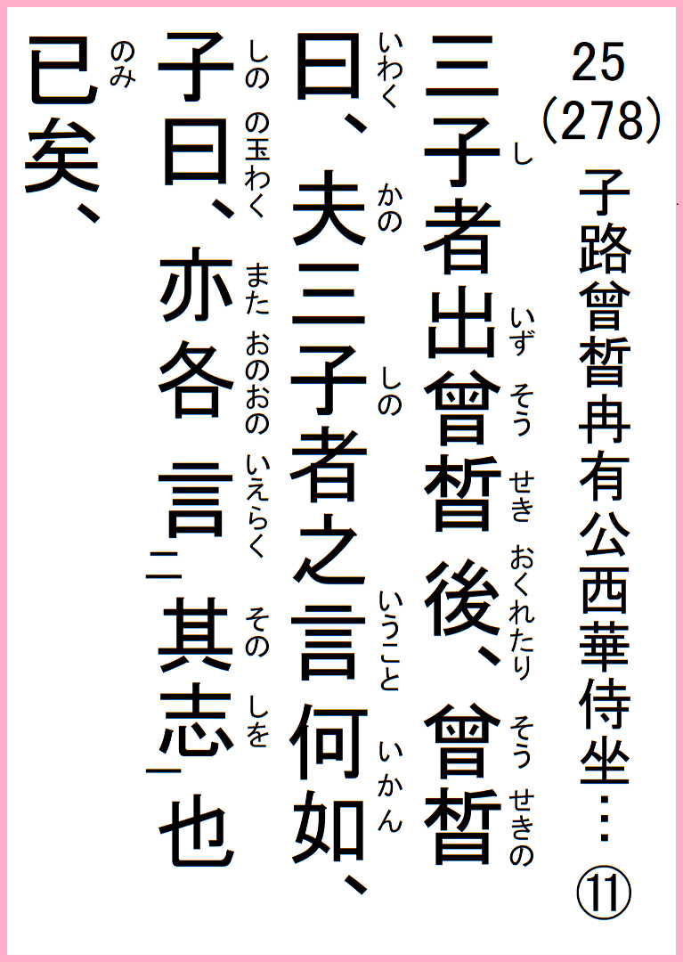 25(278) 子路曾ル冉有公西華侍坐…