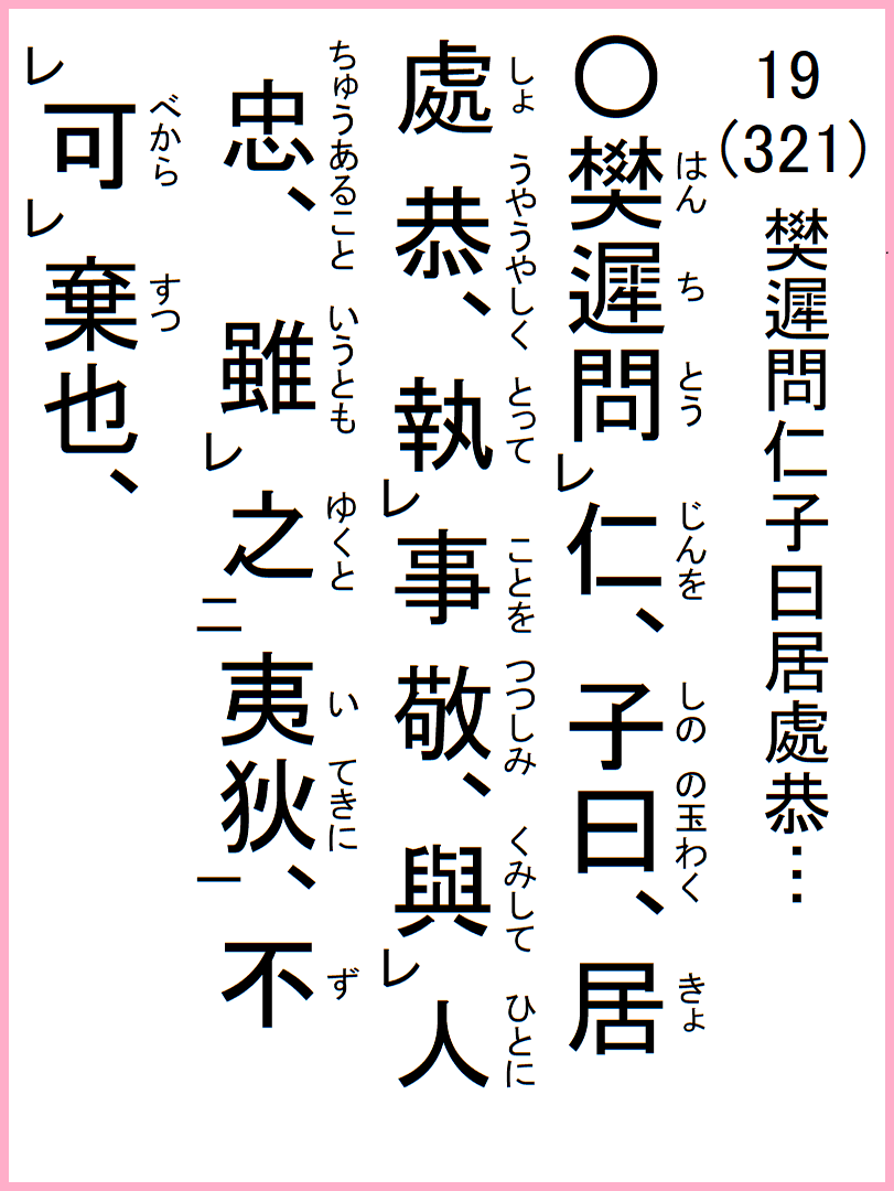 13-19 樊遅、仁を問う、子曰、居處恭しく、事を執って…
