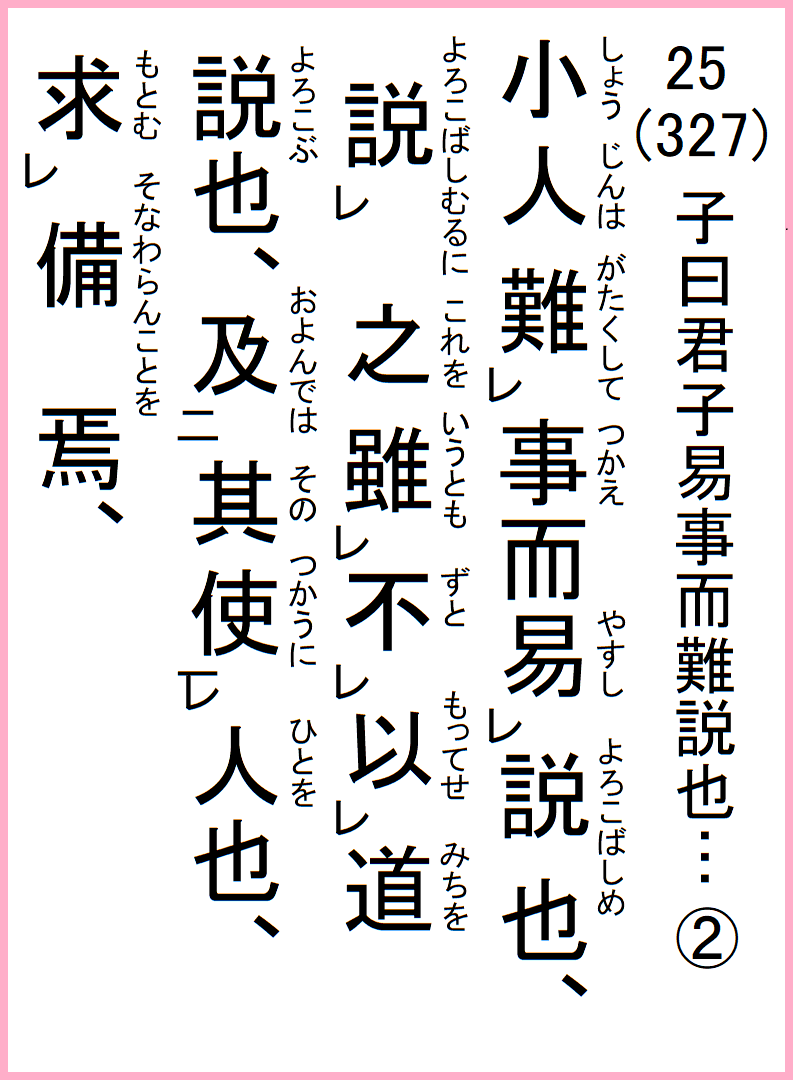 25(327) 子曰君子易事而難説也…