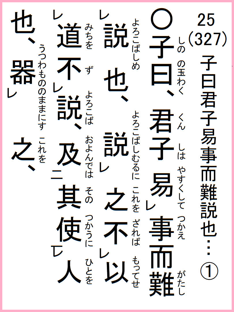 13-25 子曰、君子は事え易うして説ばしめ難し、之を説…