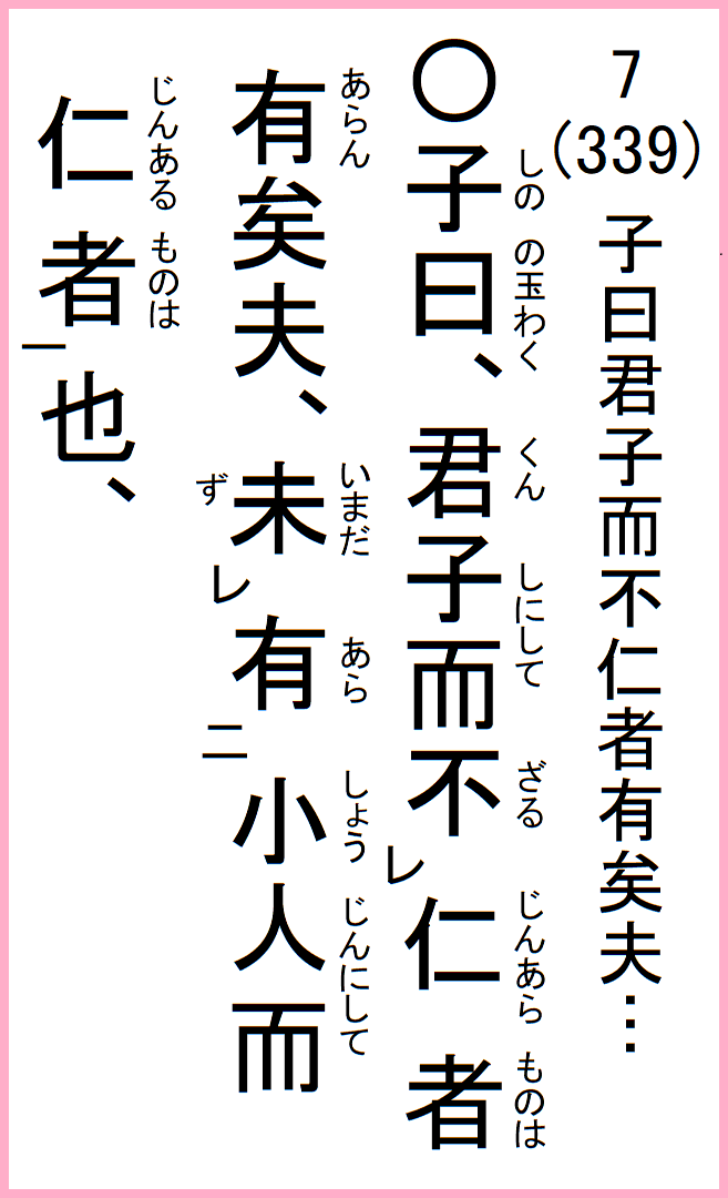 子の曰く、君子にして仁あらざる者は有らん、未だ小人にして仁ある者は有らず、
