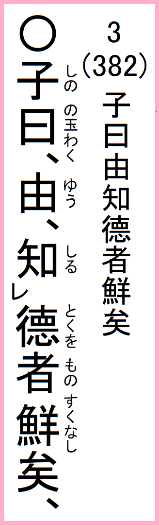 先生が仰った。由=子路よ、本当に徳を知る者は少ない。