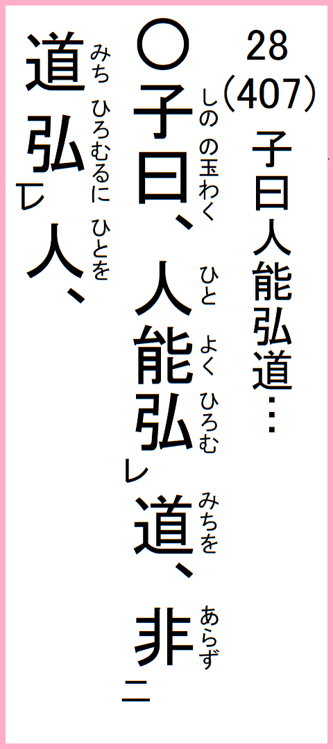15-28 子曰、人、能く道を弘む、道、人を弘むるに非ず、