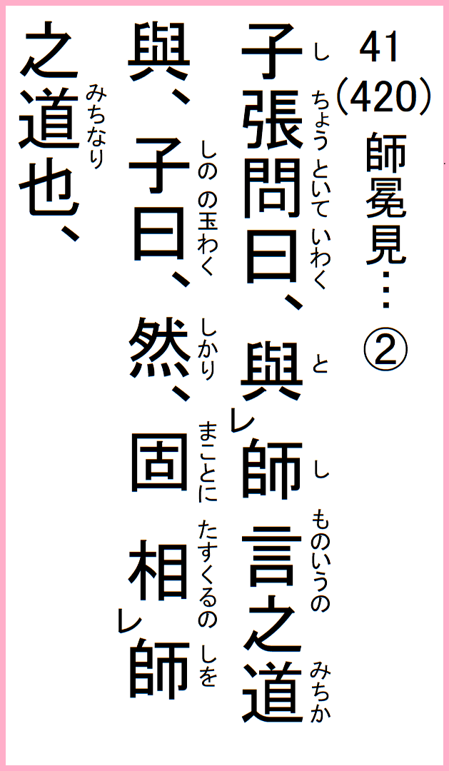 子張、問いて曰、師と、言うの道か、子の曰く、然り、固に師を相くるの道なり、