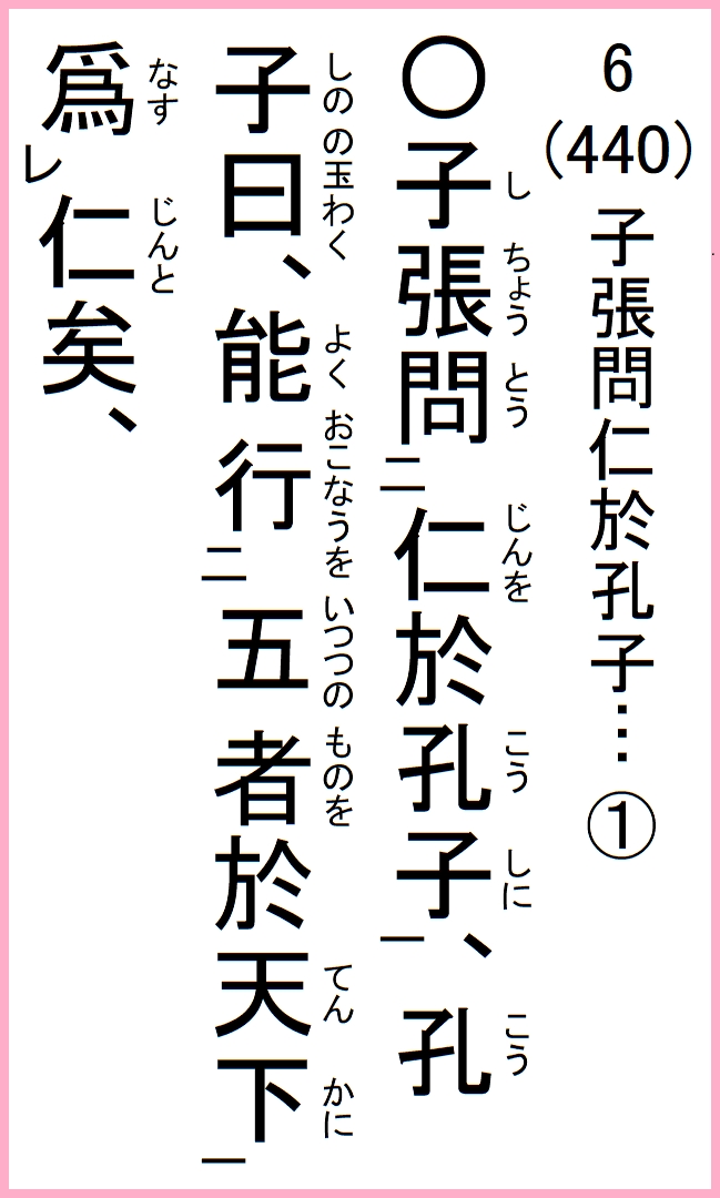 子張が仁を孔子に質問した。孔子が仰った。よく五つの事柄を天下に行うことが仁と為すことだ。