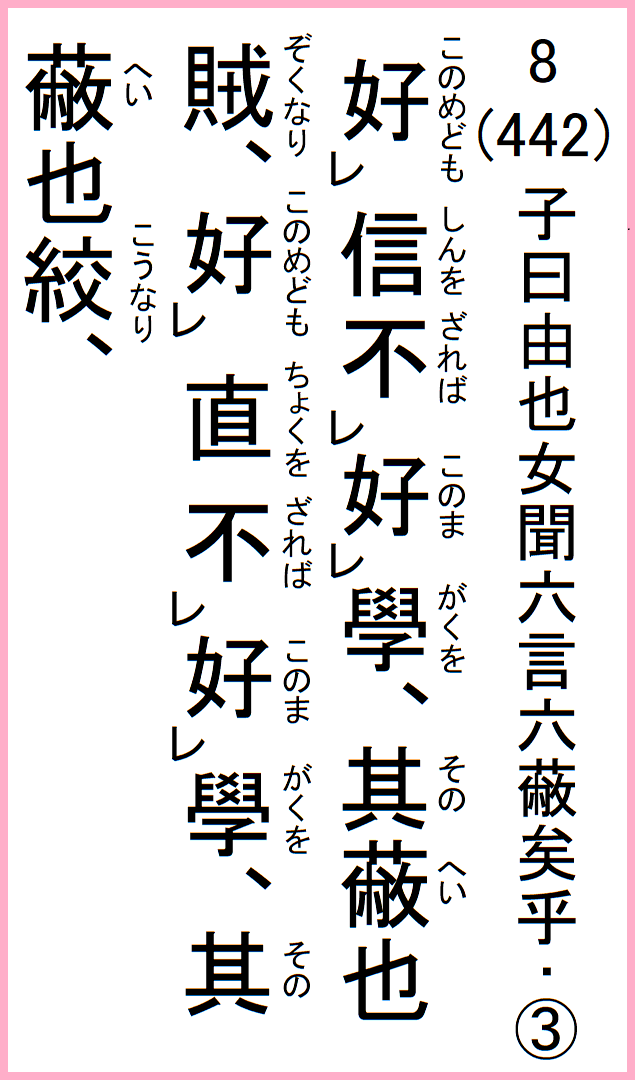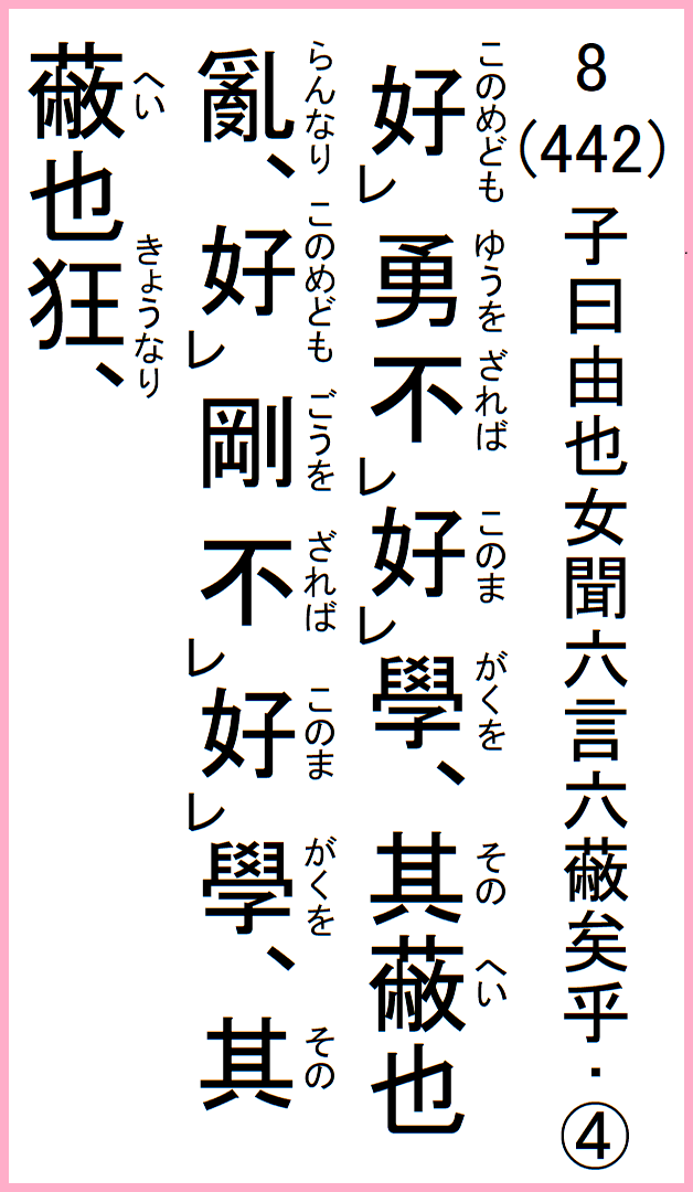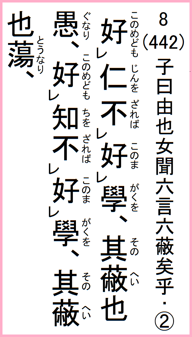 8(442) 子曰由也女聞六言六蔽矣乎…