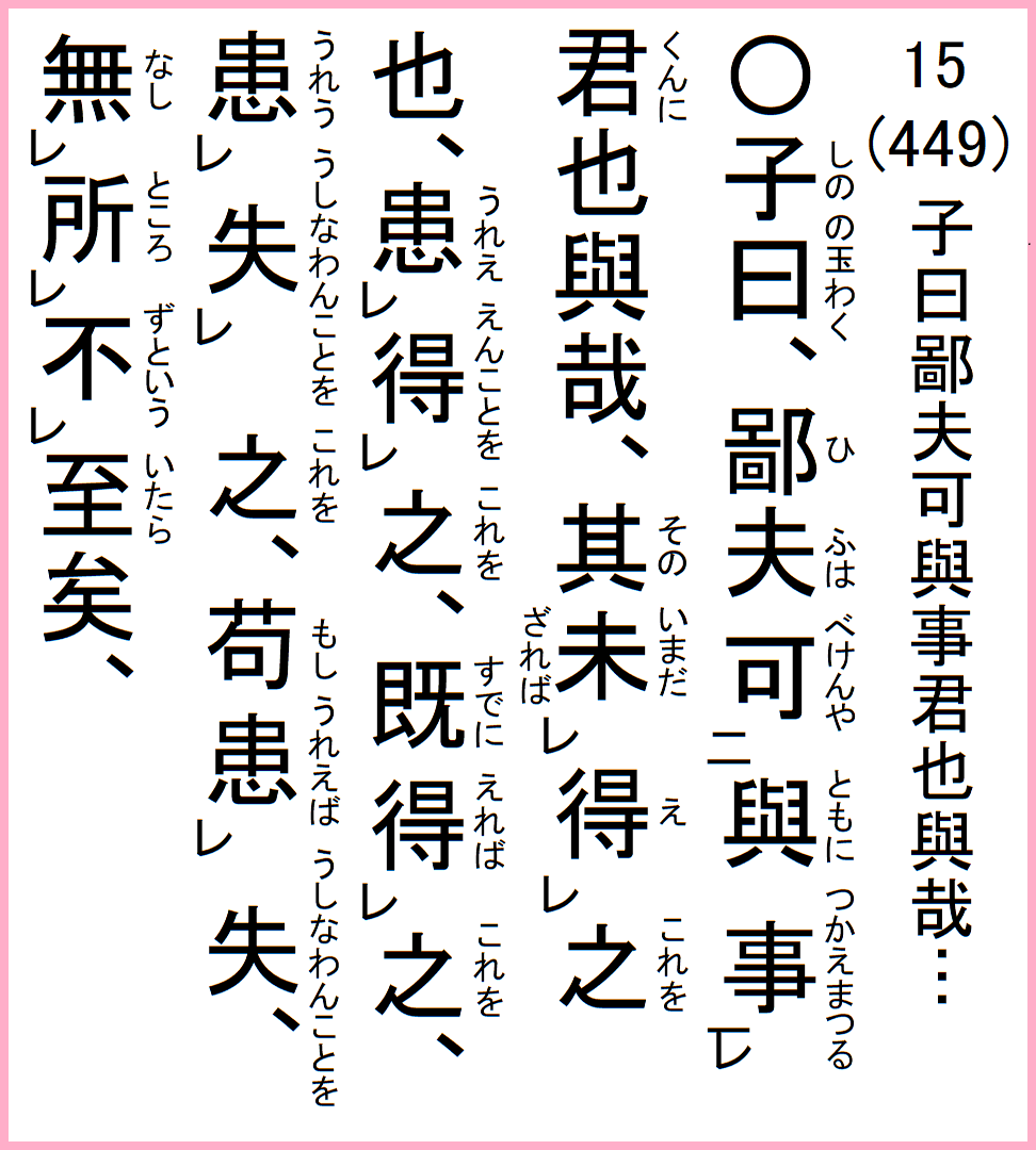 17-15 子曰、鄙夫は與に君に事えまつる可けんや、其の…