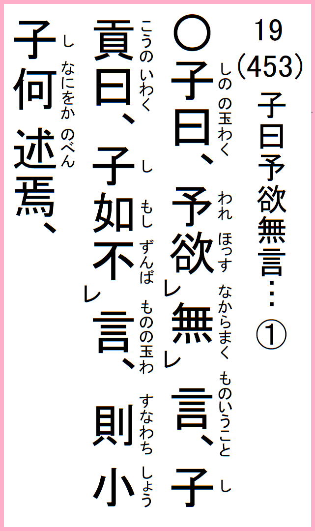 子の曰く、天、何をか言うや、四時行き、百物生る、天、何をか言うや、